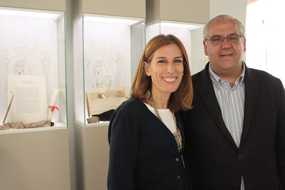 Los dieciséis documentos, pergaminos, títulos y libros de actas, entre otras joyas de papel, se exponen en 14 vitrinas donadas al Museo Arqueológico por la Fundación Abengoa, gestión en la que intervino el vecino de Andújar, Juan Carlos Rodríguez.