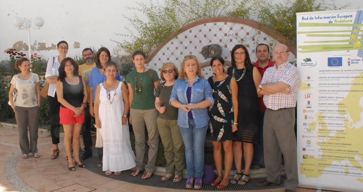 La convocatoria para la jornada a todos los miembros de la red se realizó desde la Secretaría General de Acción Exterior de la Consejería de Presidencia de la Junta de Andalucía. Fueron trece los asistentes, llegados desde los diferentes Centros de Documentación Europea de las Universidades de Sevilla, Granada y Córdoba, y de las Oficinas Europe Direct de Sevilla, Huelva, Granada, Baena (Córdoba) y Andújar, además de la Jefa de Servicio de Información y Formación Europea de la mencionada Consejería de Presidencia..