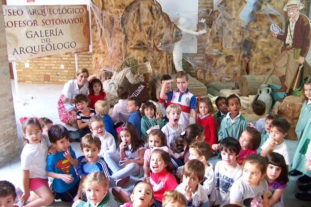 Así, nada más entrar al patio del Palacio de los Niños de Don Gome son protagonistas las telarañas, las calabazas y las brujas. En el patio interior, la reproducción del Profesor Sotomayor en sus campañas arqueológicas para sacar a luz la ciudad romana de Isturgi se ha convertido en una alegoría de la “excavación del terror”. A lo largo de los pasillos del palacio, en los que siguen expuestos los fondos más destacables del Archivo Municipal, pueden encontrase escenas terroríficas de monjes medievales, así como una cueva del vampiro, en la que un murciélago negro enciende sus ojos rojos y bate sus alas, al producirse cualquier ruido. A partir de este momento, los escolares acceden a las salas del Museo Arqueológico donde técnicos de la Concejalía de Cultura les explican, a través de los fondos expuestos, las tradiciones en los ritos funerarios de Andújar, desde el Paleolítico Inferior hasta nuestros días, con especial atención a los vestigios íberos y romanos. Máscaras funerarias, armas con las que eran enterrados los guerreros o restos de construcciones funerarias son algunas de las piezas que se dan a conocer a los más pequeños.