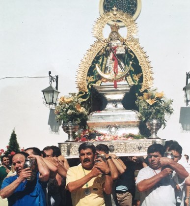 La imagen de la Virgen de Alharilla salió en procesión por los llanos de la aldea como marca la tradición al filo de las cinco de la tarde de hoy domingo. Este año acompañó un tiempo soleado y espléndido. La Virgen de Alharilla brilló como siempre y fue portada por sus infatigables anderos mientras cientos de romeros aplaudían y daban vivas a la virgen.