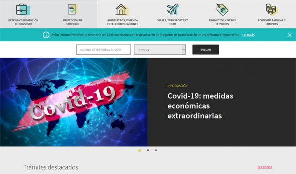 En este sentido, se recuerda que en la página web del servicio Consumo Responde (www.consumoresponde.es) se ha habilitado un espacio informativo en el que se recogen todas las medidas impulsadas para la protección de los derechos de las personas consumidoras y usuarias ante la expansión del Covid-19. La información se ha organizado en tres bloques para agilizar su consulta: medidas en materia de vivienda, medidas en materia de suministros básicos, y medidas de carácter más general con incidencia en otras cuestiones de consumo. Asimismo, se han publicado documentos con preguntas frecuentes sobre las distintas cuestiones más habituales y sobre los criterios de aplicación de la normativa específica aprobada para proteger los intereses de consumidores y usuarios durante el estado de alarma.