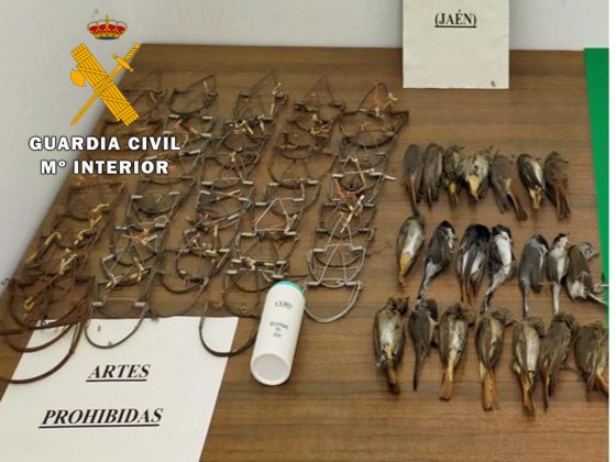 La otra intervención se ha producido en el término municipal de Porcuna (Jaén), en la que un vecino de la referida localidad, fue sorprendido por Componentes de la Guardia Civil del Puesto de la referida localidad, recogiendo aves que había capturado con artes o medios prohibidos de captura trampas-costillas, instaladas en la zona conocida como Camino de Castro, término municipal de Porcuna.