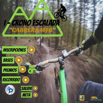 Para realizar la inscripción, aquellas personas interesadas en participar pueden acceder al formulario online habilitado en la dirección web: https://forms.gle/CBQFhGjjzXDKEPVK7 o hacerlo a través del cartel virtual habilitado en el siguiente enlace: https://view.genial.ly/5fbfa120d342a20d8b8dcc6c/interactive-content-i-crono-escalada-cabrera-mtb Para el registro de tiempos y distancia, los deportistas participantes deben usar un reloj con GPS, un ciclocomputador o un móvil con una aplicación de ciclismo durante la realización de la prueba dentro del periodo marcado por la organización (del 15 al 31 de enero).