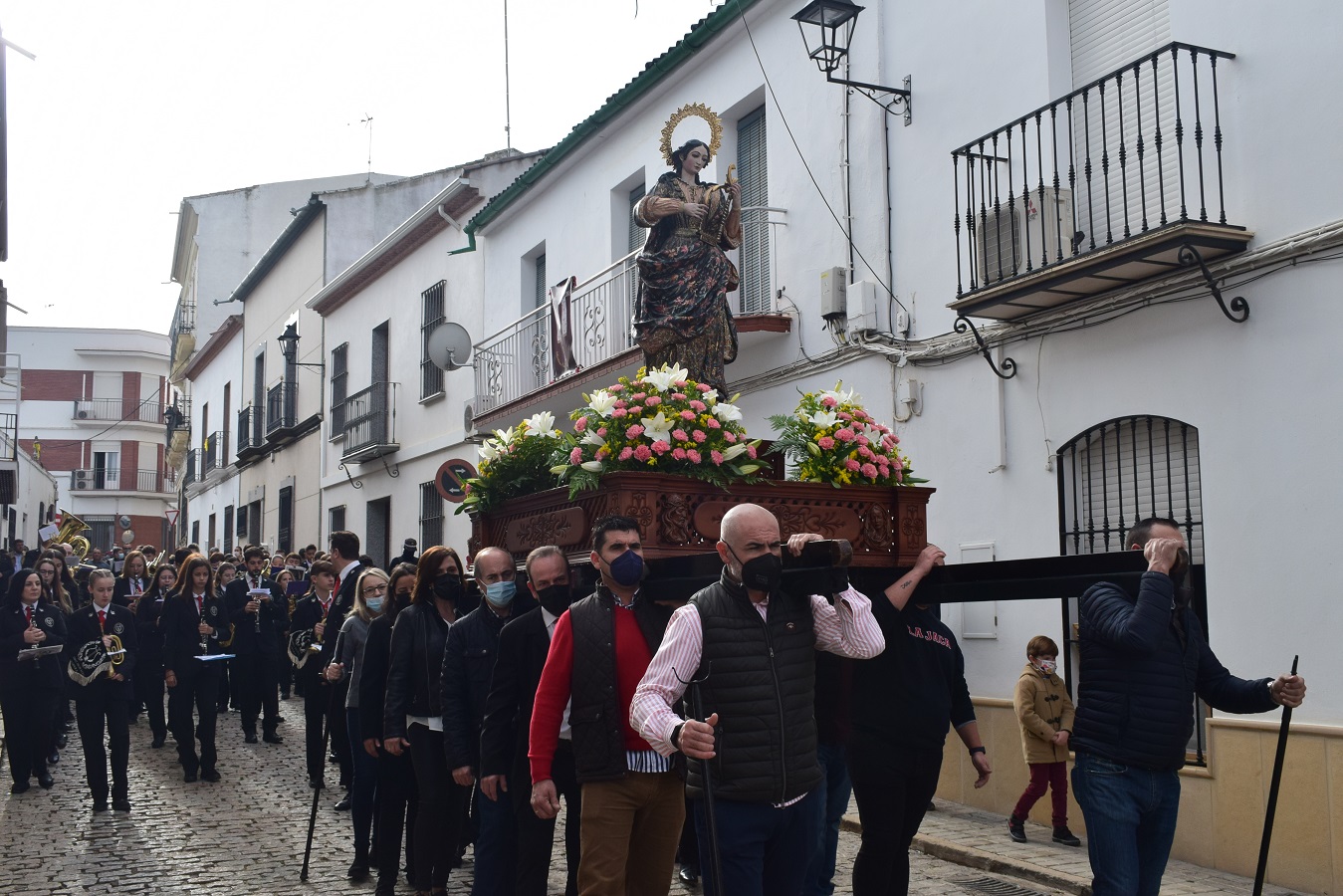 Finalmente, la procesión discurrió por las vías urbanas de Lopera acompañada por los sones musicales de la Asociación Musical Pedro Morales. A las 12.00 de la mañana se celebró una solemne fiesta religiosa en honor a Santa Cecilia en la Iglesia Parroquial de Lopera.