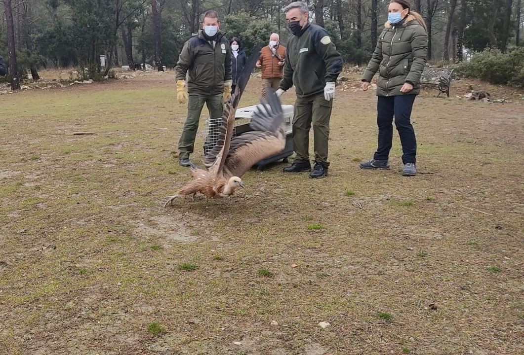 El ejemplar de buitre leonado fue localizado desorientado y desnutrido en una zona comercial del centro de la capital. Tras su ingreso, el personal del CREA pudo comprobar que se trataba solo de un problema alimenticio, que suele darse en el caso de ejemplares jóvenes como este, ya que por jerarquía son los últimos en acceder al alimento. Tras recuperar su musculatura y convivir en el centro con otros cuatro ejemplares de su especie, el joven buitre ha podido volver a volar libre e integrarse en el medio natural. La suelta se ha producido en el Pico del Águila en Mancha Real, en Sierra Mágina.