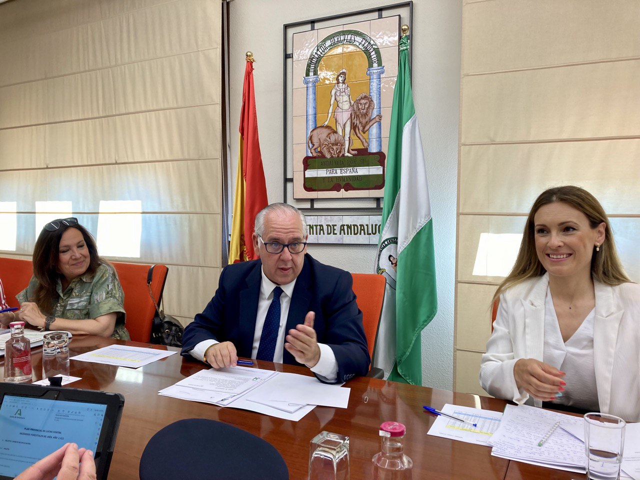Jesús Estrella, acompañado de la delegada de Desarrollo Sostenible, María José Lara, ha informado del dispositivo del Plan tras presidir la reunión del Comité Asesor Provincial que fomenta la coordinación y la implicación entre todas las administraciones, fuerzas y cuerpos de seguridad y agentes que intervienen en la prevención o extinción de incendios forestales.