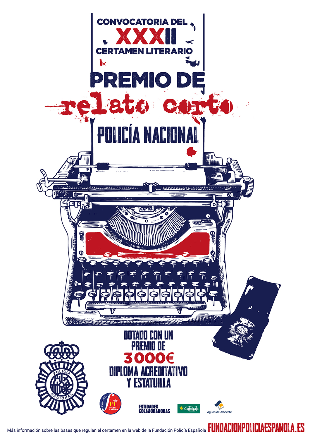 La Fundación Policía Española, la Fundación Globalcaja y Aguas de Albacete han hecho pública la convocatoria del XXXII certamen literario “Premio de Relato Corto Policía Nacional” y que está dotado con un premio económico de 3.000 euros, un diploma acreditativo y una estatuilla. Los relatos, adscritos al género policiaco, criminal o de suspense, deberán remitirse antes del 30 de septiembre de 2022 conforme a lo estipulado en las bases de la convocatoria que pueden ser consultadas a través de la página web http://www.fundacionpoliciaespanola.es.