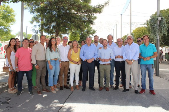 El presidente provincial del Partido Popular de Jaén, Erik Domínguez, el presidente del PP de Andújar, Jesús Estrella, y otros cargos orgánicos e institucionales del partido, han recibido hoy en la feria de Andújar al coordinador Partido-Gobierno del PP de Andalucía y consejero de la Presidencia, Antonio Sanz, y el viceconsejero de Área, Tomás Burgos.