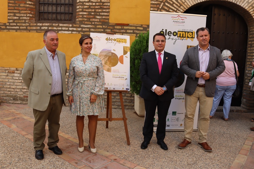 El alcalde de Andújar, Pedro Luis Rodríguez ha inaugurado la séptima edición de Óleomiel, junto a la delegada territorial de Agricultura, Pesca, Agua y Desarrollo Rural de la Junta de Andalucía, Soledad Aranda y el diputado provincial de Agricultura, Pedro Bruno.