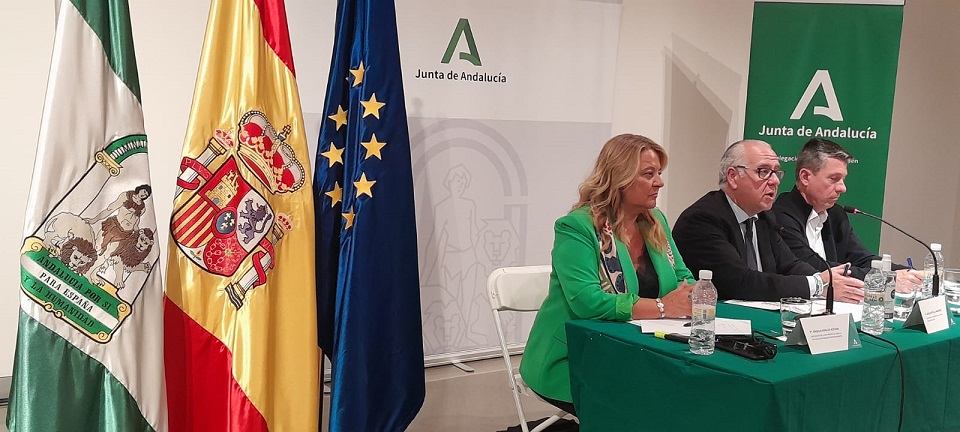 El delegado del Gobierno de la Junta de Andalucía, Jesús Estrella, ha presidido la reunión del Foro Provincial para la Integración de Personas de Origen Migrante en la provincia de Jaén. Junto a él, la delegada de Inclusión Social, Juventud, Familias e Igualdad, Ángela Hidalgo, y el vicepresidente de este foro y presidente de Cáritas Diocesana, Rafael Ramos.