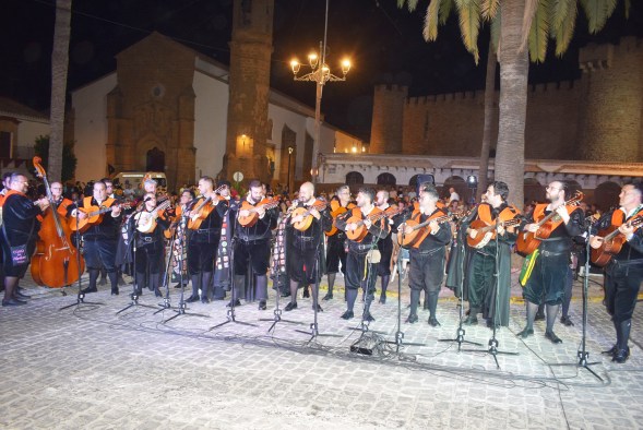 La Balconada en el Ayuntamiento abrió ayer el XIV Certamen de Tunas Villa de Lopera. Las distintas tunas cantaron a luz de la luna a las candidatas a Reina y Damas de las Fiestas de los Cristos.