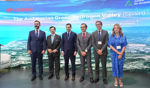 El presidente andaluz ha recordado que de la mano de CEPSA se hará posible el primer Corredor de Hidrógeno Verde de Europa que, desde el Puerto de Algeciras, el más eficiente de Europa y quinto por conectividad marítima del continente, transportará el amoniaco verde producido en Andalucía hasta el puerto de Rotterdam para abastecer de energía limpia a los grandes centros industriales de los Países Bajos, Bélgica y Alemania.