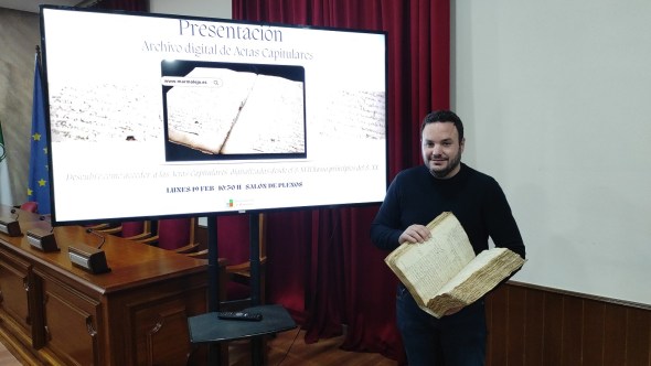 Esta mañana se ha presentado en rueda de prensa el nuevo archivo digital de las actas capitulares del Ayuntamiento de Marmolejo. El encargado de presentarlo y detallarlo ha sido el concejal de Cultura y Patrimonio, Rafael Valdivia, quien ha destacado el gran hito histórico que supone la apertura de “un nuevo espacio digital en nuestra página web donde se pueden ya consultar estas actas capitulares desde mediados del siglo XVII hasta mediados del siglo XX”. Un trabajo de ordenación, catalogación y digitalización del archivo municipal y que se realizaba durante el año 2023 gracias a la colaboración de un becario de la localidad, Ángel Expósito, y la empresa de gestión de archivos “Alacaja”.