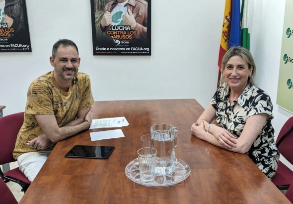 Jordi Castilla, secretario general de FACUA Andalucía, ha mantenido una reunión con Isabel María Aguilera, portavoz de Turismo del Grupo Socialista en el Parlamento de Andalucía, donde han abordado la necesidad de incluir a los consumidores en el debate sobre la posible implantación de una tasa turística en la comunidad autónoma.