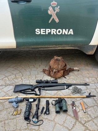 Los investigados portaban cartuchos metálicos de bala del calibre 308W, linternas, una horquilla trípode, un cuchillo, prismáticos y un visor térmico para detectar los animales, material para la caza furtiva. Por los motivos expuestos, se ha procedido a investigar a los presuntos autores de un delito contra la Flora y Fauna Silvestre.