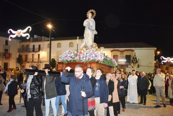Las calles de Lopera fueron testigo de la tradicional procesión de la Inmaculada Concepción que fue portada por un fervoroso grupo de mujeres y hombres loperanos.