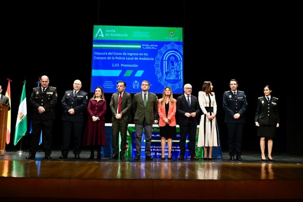 El consejero de la Presidencia, Interior, Diálogo Social y Simplificación Administrativa, Antonio Sanz, ha presidido este miércoles en Linares (Jaén) el acto de clausura y entrega de diplomas a los alumnos de la 53ª Promoción del Curso de Ingreso en los Cuerpos de la Policía Local de Andalucía, donde se han graduado 58 nuevos efectivos que se incorporarán a los cuerpos de 22 municipios de siete provincias andaluzas tras completar su ciclo formativo en el Instituto de Emergencias y Seguridad Pública de Andalucía (IESPA).