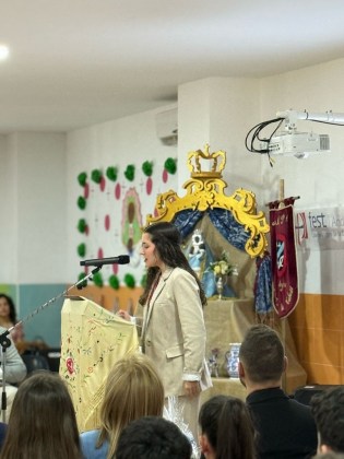 El acto dio comienzo con la intervención del director del centro, José Fontalba, quien dio la bienvenida a los centros escolares y comunidad educativa, así como a autoridades, compuestas por la Cofradía Matriz, Ayuntamiento de Andújar y eclesiásticas. En sus palabras, Fontalba destacó el valor de mantener viva la tradición romera entre las nuevas generaciones y el orgullo de que una alumna del colegio protagonizara un acto de tanto significado para la ciudad. Igualmente, pidió que los jóvenes no se avergüencen de ser cristianos y de tener esa fe.