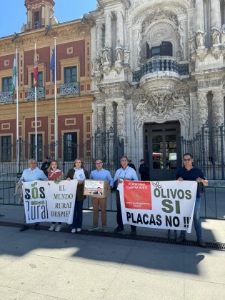 Este registro de rúbricas ha venido acompañado de la caravana informativa de SOS Rural, en la que tres camiones han recorrido Sevilla informando a todos los ciudadanos de esa tala del mar de olivos andaluz que está permitiendo el Gobierno de la Junta de Andalucía. “Juan Manuel Moreno Bonilla está especulando con nuestros territorios más fértiles, talando olivos de alto valor productivo para instalar megaplantas solares y entregando algo tan valioso para una región, para un país, como son sus agricultores, sus territorios más fértiles y su soberanía alimentaria”, ha lamentado Corbalán.