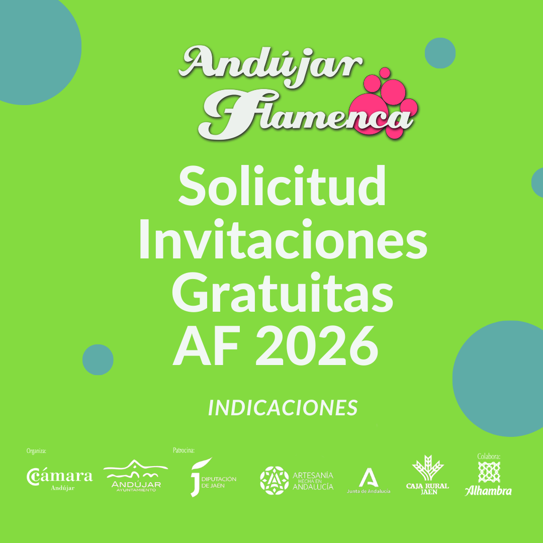 Los menores de 14 años no podrán solicitar ni retirar invitaciones, así como tampoco podrán acceder al recinto de Andújar Flamenca. Por otro lado los menores de 14 años si podrán participar y acceder al recinto de Andújar Flamenca Baila pero no solicitar invitaciones gratuitas.