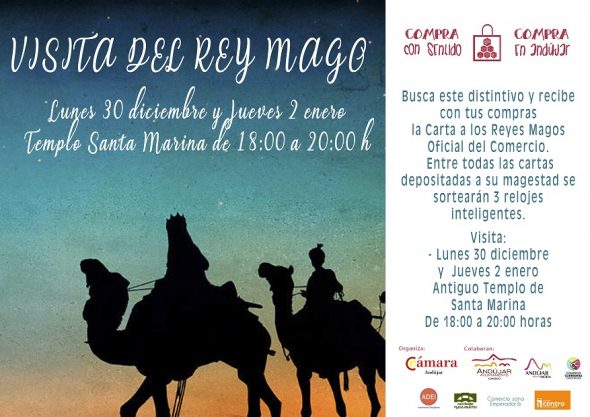 Su majestad el Rey Gaspar visitará esta tarde y el próximo jueves 2 de enero el Templo de Santa Marina de Andújar para recibir de manos de los más pequeños las cartas del comercio. Un año más, la Cámara de Comercio e Industria de Andújar desarrolla esta iniciativa dentro de la Campaña de Navidad junto con la concejalía de Comercio del Ayuntamiento de Andújar con la colaboración de los colectivos y asociaciones comerciales.… Seguir leyendo